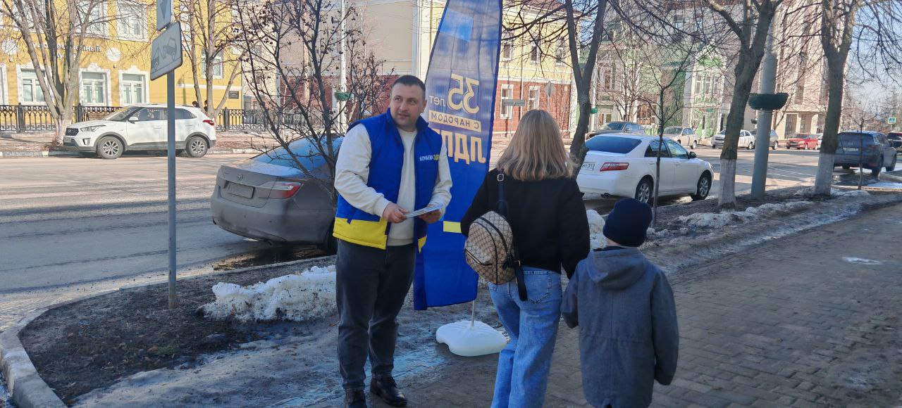 С партийной символикой и агитационными материалами он рассказал старооскольцам об основных положениях программы Председателя партии Леонида Слуцкого и текущей деятельности ЛДПР.